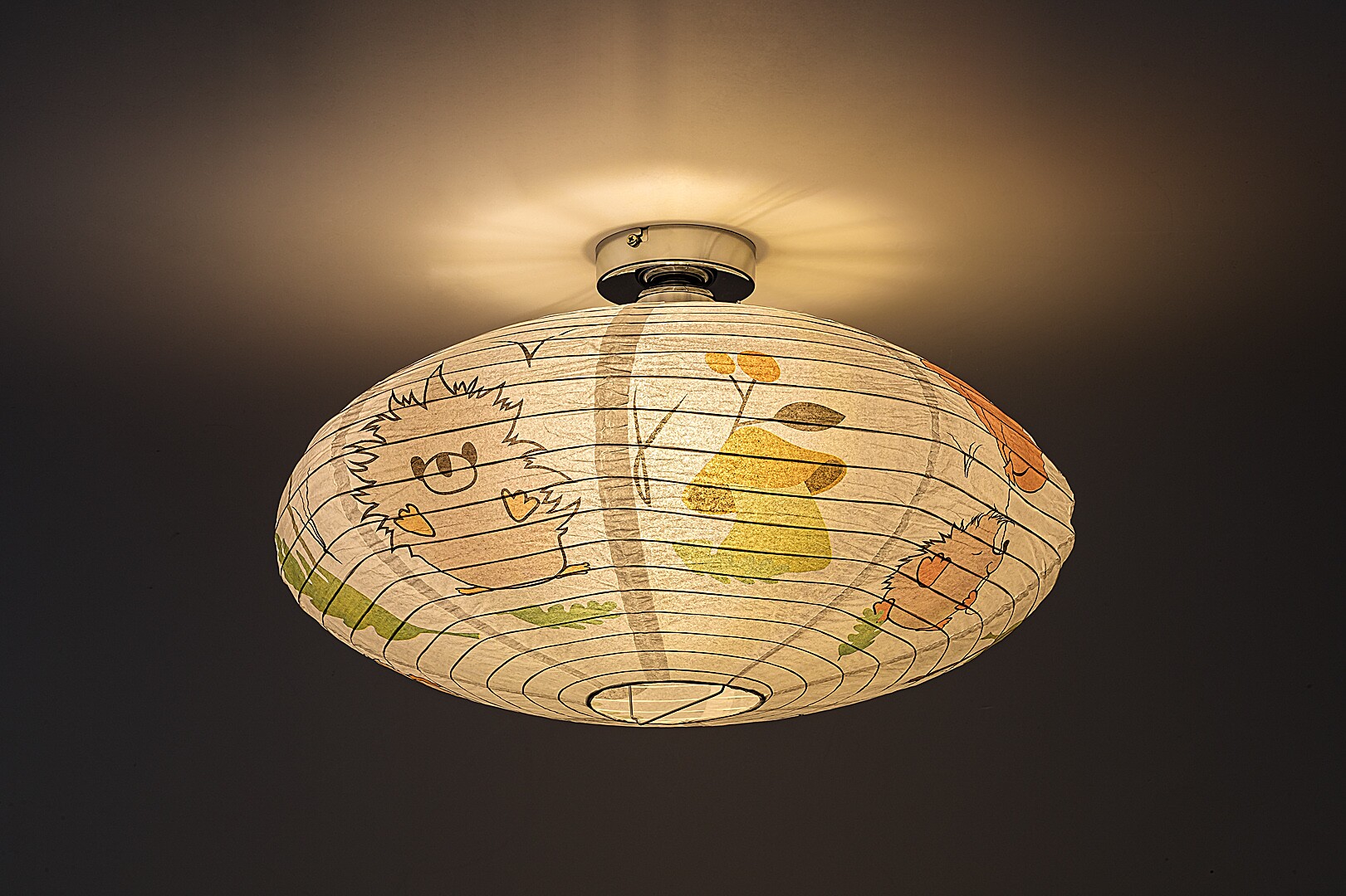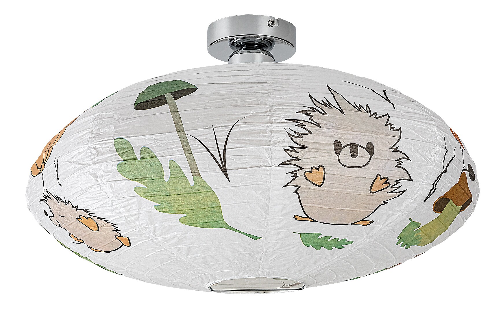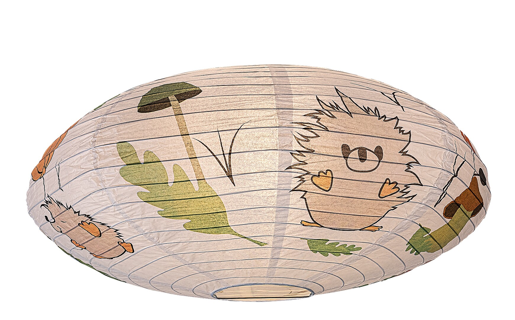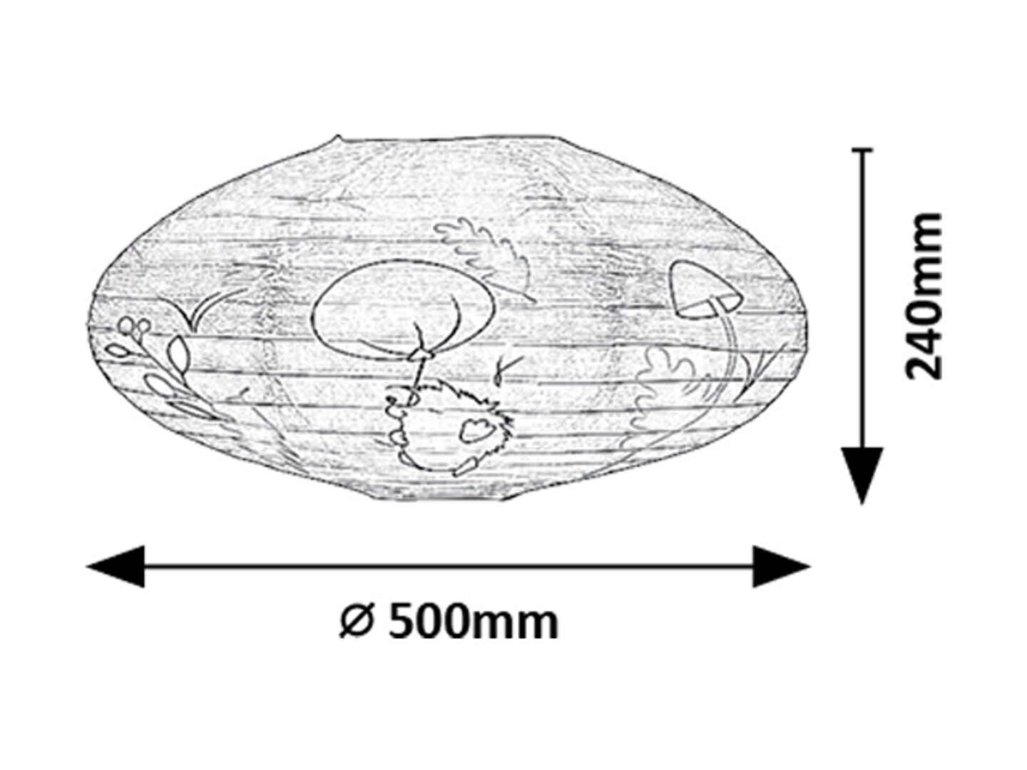 La plafoniera in carta per bambini Rabalux Hedgy è un modello progettato internamente da Rabalux. È ideale per chi desidera rendere la cameretta dei bambini ancora più accogliente con motivi carini e allegri. La lampada ha una forma arrotondata e appiattita, è realizzata in carta ed è decorata con un adorabile motivo di riccio e palloncini che conquisterà sicuramente il cuore del piccolo abitante della stanza. I colori tipici del motivo sono tonalità di arancione, marrone e verde, piacevoli e rilassanti per la vista, e capaci di trasmettere calore. La lampada per bambini può essere utilizzata con una singola lampadina con una potenza massima di 40 W. Se si desidera creare un’atmosfera ancora più accogliente e intima, si consiglia una lampadina che emetta luce bianca calda. La plafoniera per la cameretta viene fornita senza portalampada e senza sorgente luminosa.