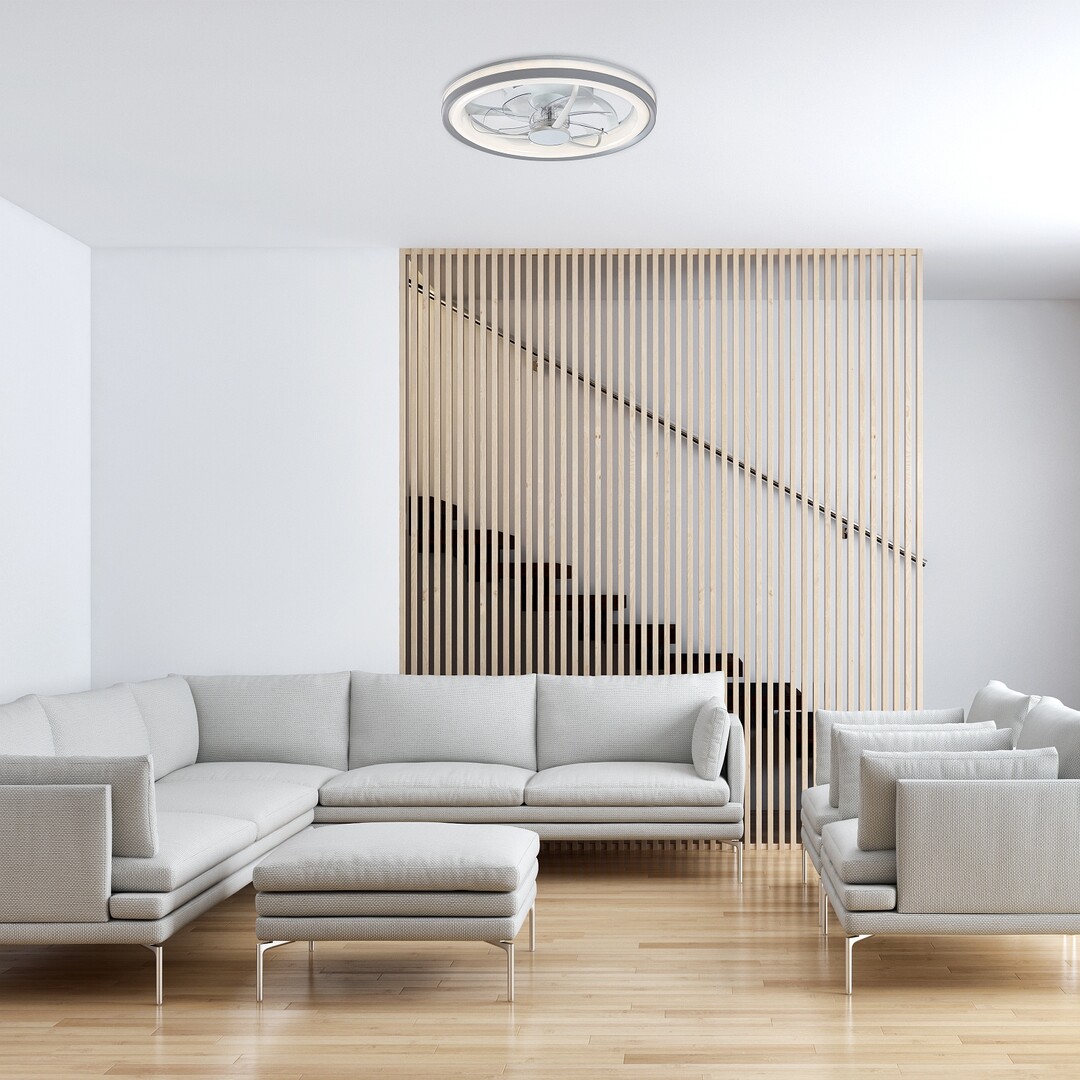 Rabalux Fanricius lampada da ventilatore da soffitto è la scelta ideale per chi cerca una lampada con una vasta gamma di funzioni. La lampada intelligente ha una fonte di luce LED integrata, che garantisce un funzionamento efficiente dal punto di vista energetico e una lunga durata. Oltre al ventilatore, ci sono una serie di funzioni per il comfort: la temperatura del colore della lampada può essere cambiata tramite un telecomando o un interruttore a muro, e anche la luminosità, la memoria, il timer e la funzione luce notturna possono essere regolati tramite il telecomando. Le funzioni intelligenti della lampada 2-in-1 possono anche essere controllate tramite un'app tramite Wi-Fi. La lampada è realizzata in plastica con una base rotonda di colore argentato e uno schermo bianco in stile funzionale. La potenza del ventilatore è sufficiente per raffreddare stanze fino a 12 m². Questo modello è consigliato per il soggiorno, la camera da letto o lo studio.