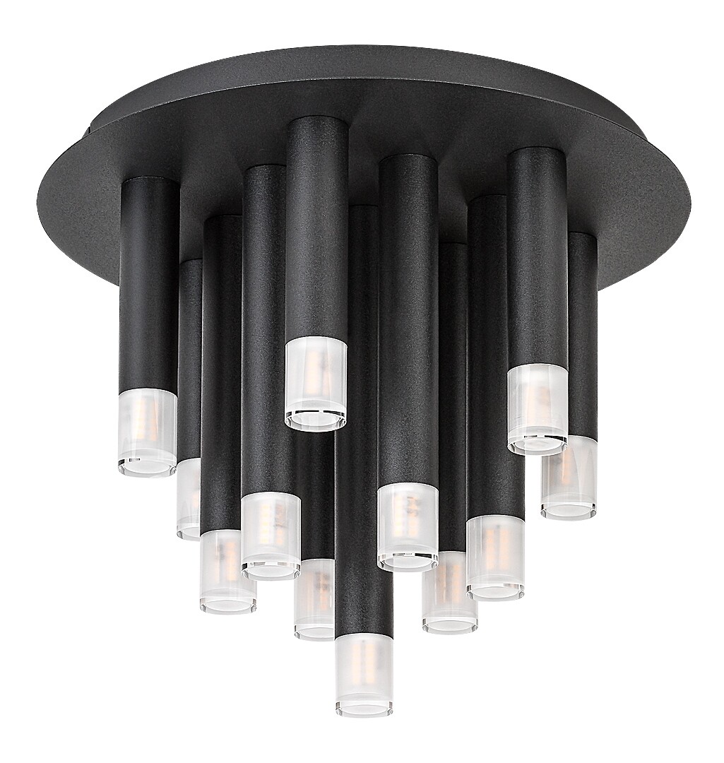 La plafoniera Rabalux Ramira è principalmente consigliata a chi cerca una lampada dal design unico e moderno che possa essere integrata in quasi ogni stanza della propria casa. Questo modello spettacolare è realizzato in metallo di un elegante colore nero. Le teste delle lampade sono completate da paralumi in acrilico trasparente. La lampada può essere fissata al soffitto tramite una grande base decorativa rotonda. Questa è combinata con elementi cilindrici della lampada di diverse lunghezze, che ricordano stalattiti o, ancora di più, ghiaccioli pendenti. La plafoniera è perfetta per il soggiorno, la cucina, la sala da pranzo o la camera da letto. Può essere utilizzata con 13 lampadine, ciascuna con una potenza massima di 5 W. Tipo di attacco: G9. Grazie al grande numero di lampadine, la lampada ha un'intensità luminosa significativa. Viene fornita senza sorgenti luminose.
