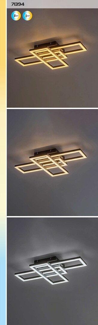 La plafoniera Rabalux Mereni è la scelta perfetta per chi ama le luci LED dal design veramente moderno e creativo. Questo accattivante modello smart è realizzato in metallo nero con un paralume in plastica bianca. La struttura è composta da tre elementi rettangolari che si incrociano, e la lampada può essere fissata al soffitto tramite una base decorativa quadrata. È dotata di una fonte luminosa LED integrata, la cui temperatura del colore può essere regolata tramite interruttore a muro o telecomando. Inoltre, puoi usufruire dei vantaggi di luminosità regolabile, memoria, timer e funzione luce notturna, tutte controllabili tramite telecomando. Questo modello versatile è principalmente consigliato per soggiorni, sale da pranzo e camere da letto moderne. Grazie alla tecnologia LED integrata, la lampada è caratterizzata da un funzionamento a risparmio energetico e una lunga durata.