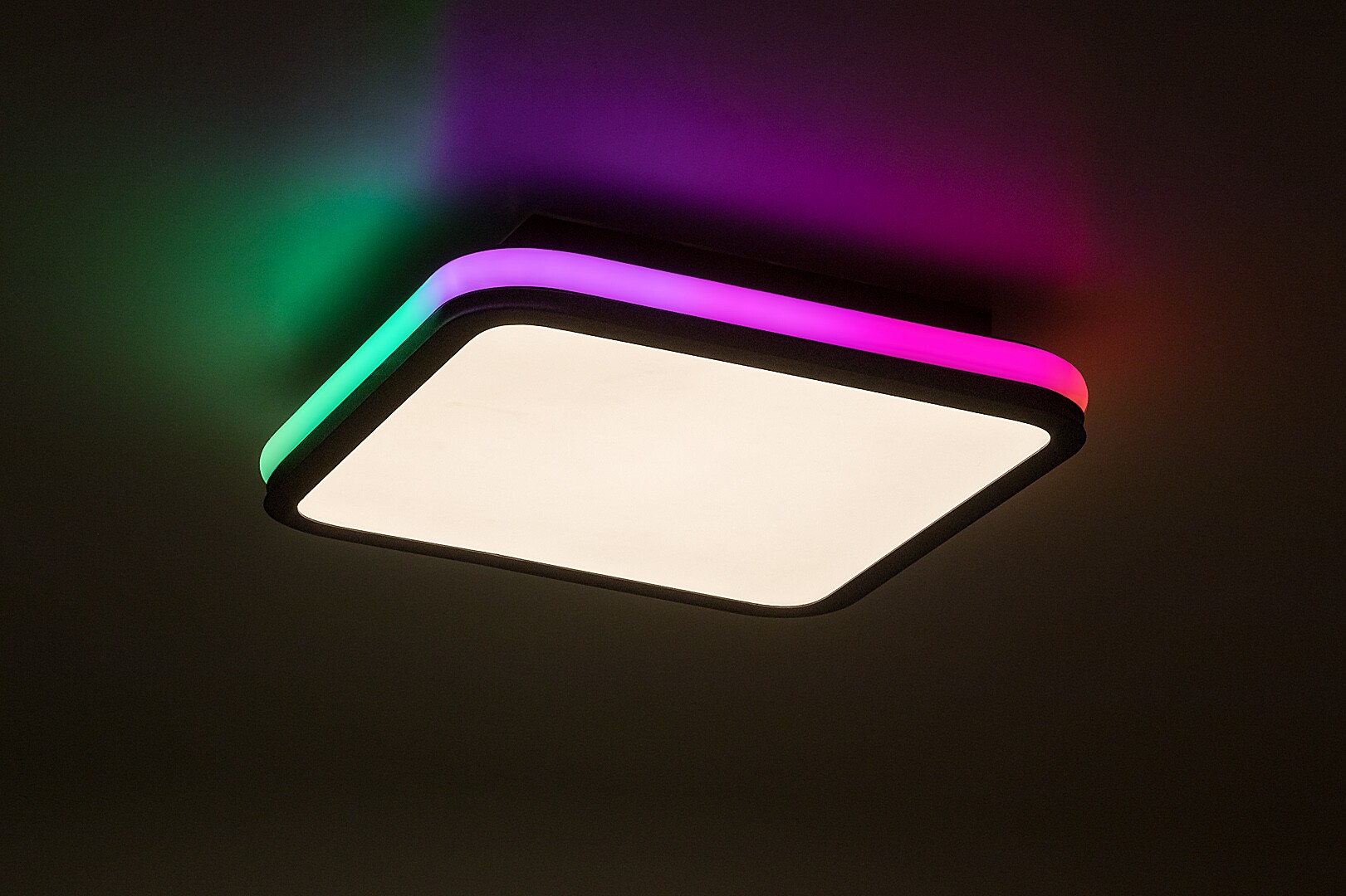 La plafoniera smart Rabalux Serkan è la scelta ideale per chi cerca un modello che combini ampie funzionalità con un design pulito. Questa luce LED è realizzata in metallo nero con un paralume in plastica bianca. La forma quadrata della lampada è ammorbidita dai bordi arrotondati. È dotata di una fonte luminosa LED integrata, la cui temperatura del colore può essere regolata tramite telecomando o interruttore a muro. La lampada è in grado di illuminare con luce RGB, evidenziata da una banda che corre lungo il lato della struttura. Questa parte esterna può essere accesa separatamente. Con il telecomando fornito con la lampada, è possibile anche regolare la luminosità e sfruttare la funzione memoria. Grazie alla tecnologia LED, questa plafoniera si distingue per un funzionamento a risparmio energetico e una lunga durata. Questo modello versatile è consigliato per il soggiorno, la sala da pranzo o la camera da letto.