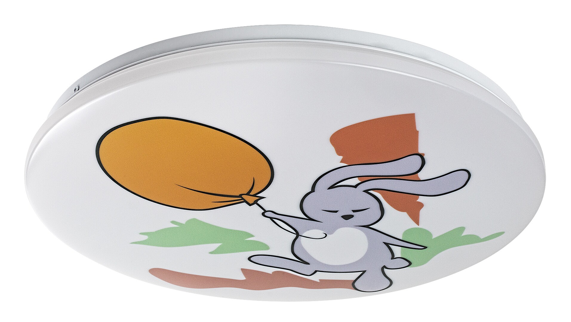 La plafoniera per bambini Rabalux Hopply è un modello progettato internamente da Rabalux. È principalmente consigliata a chi cerca una plafoniera LED colorata con una lunga durata per la cameretta dei bambini. La lampada ha una forma rotonda, una struttura in metallo e un paralume in plastica decorato con un motivo. Il paralume bianco è decorato con un adorabile motivo di coniglietto e palloncini, che sicuramente riscalderà il cuore del piccolo abitante della stanza. I colori predominanti del motivo sono marrone, arancione e verde, rendendo questo modello la scelta perfetta per le stanze sia dei maschietti che delle femminucce. La lampada per bambini è dotata di una fonte luminosa LED integrata che emette una luce bianca calda, creando un’atmosfera accogliente e intima. Grazie alla tecnologia LED, la lampada per la cameretta si distingue per un funzionamento a risparmio energetico e una durata eccezionale.