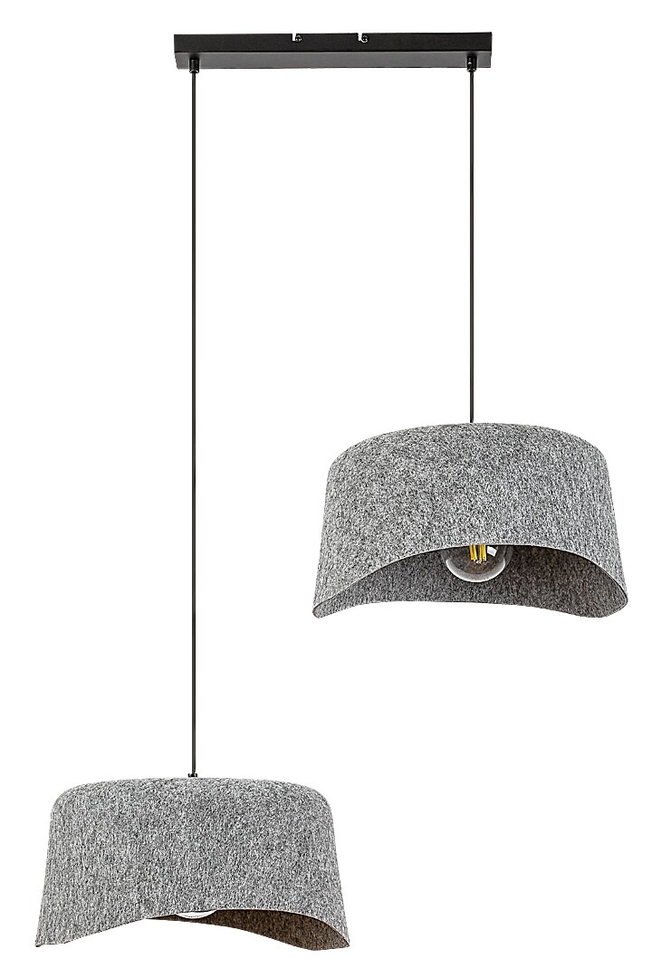 La lampada a sospensione Rabalux Farelia a 2 luci è consigliata a chi apprezza modelli unici sia per forma che per materiale. Questa lampada a sospensione con due portalampada è realizzata in metallo nero con paralumi in feltro grigio e può essere fissata al soffitto tramite una base decorativa rettangolare allungata. Il materiale dei paralumi è composto da feltro riciclato ecologico. Le due testate luminose sono sospese a diverse altezze e, insieme alle linee ondulate dei paralumi, conferiscono un aspetto vivace alla lampada, mentre il materiale aggiunge un tocco di calore. La lampada a 2 luci è ideale per soggiorni, camere da letto o studi in stile moderno. Può essere utilizzata con due lampadine, ciascuna con una potenza massima di 10 W. Il tipo di attacco è E27. La lampada è fornita senza sorgenti luminose.