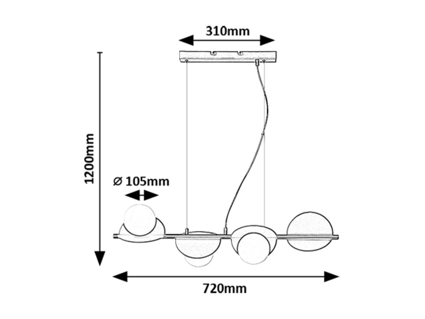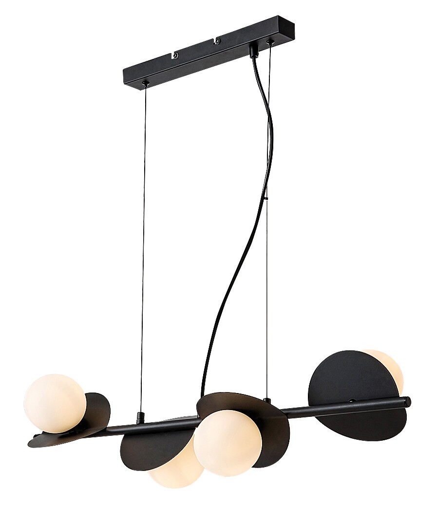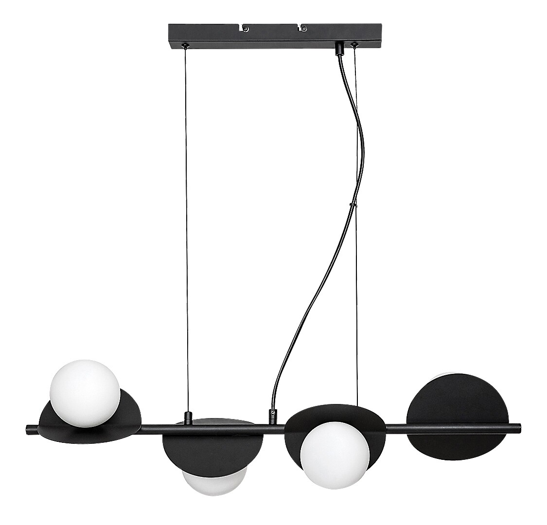 La lampada a sospensione Rabalux Jules a 4 luci è consigliata a chi cerca un modello dal design creativo e dall’aspetto originale. La lampada è realizzata in metallo, nella raffinata combinazione di colori bianco e nero, con paralumi in vetro in stile industriale. È composta da forme rotonde e sferiche: le quattro testate luminose presentano ciascuna una struttura curva piatta e rotonda e un paralume sferico bianco. Le testate sono disposte in fila, una accanto all’altra, su una barra di supporto sospesa dalla base decorativa. Ogni testata è orientata in una direzione diversa, permettendo un’illuminazione efficace dell’ambiente. La lampada può essere fissata al soffitto tramite una base decorativa rettangolare allungata. È ideale per il soggiorno, la sala da pranzo, la camera da letto o anche per la cucina. Può essere utilizzata con quattro lampadine, ciascuna con una potenza massima di 5 W. Il tipo di attacco è G9. La lampada è fornita senza sorgenti luminose.