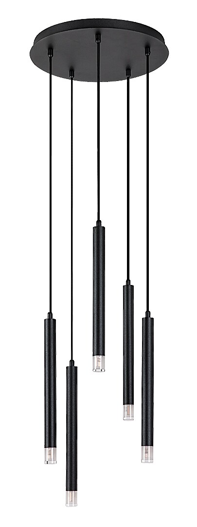 La lampada a sospensione Rabalux Ramira a 5 luci è consigliata a chi cerca una sospensione minimalista che possa essere integrata in quasi ogni ambiente di una casa moderna. La lampada è realizzata in metallo nero con paralumi in acrilico trasparente e una grande base decorativa rotonda. Le testate luminose hanno una forma tubolare e cilindrica e sono sospese a diverse altezze, il che conferisce alla lampada un aspetto dinamico e interessante. Questo modello è la scelta ideale per il soggiorno, la cucina, la sala da pranzo o la camera da letto. Può essere installato sopra il tavolo da pranzo oppure sopra il letto. Può essere utilizzata con cinque lampadine, ciascuna con una potenza massima di 5 W. Il tipo di attacco è G9. È possibile scegliere sorgenti luminose a luce bianca calda o naturale. La lampada a sospensione è fornita senza sorgenti luminose.