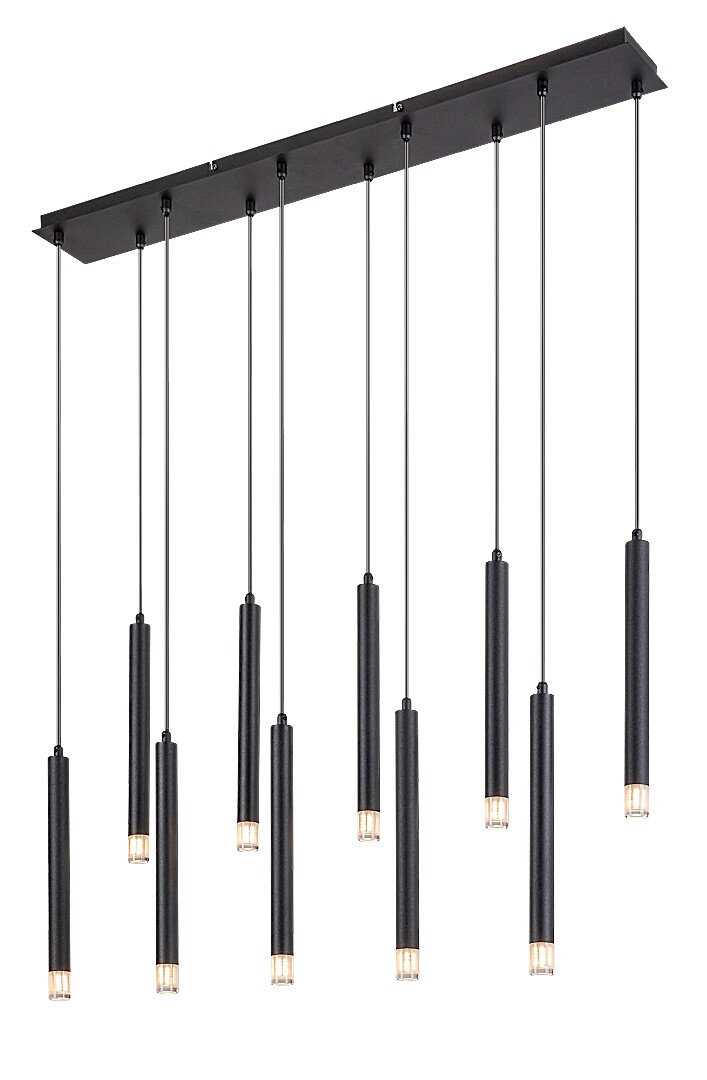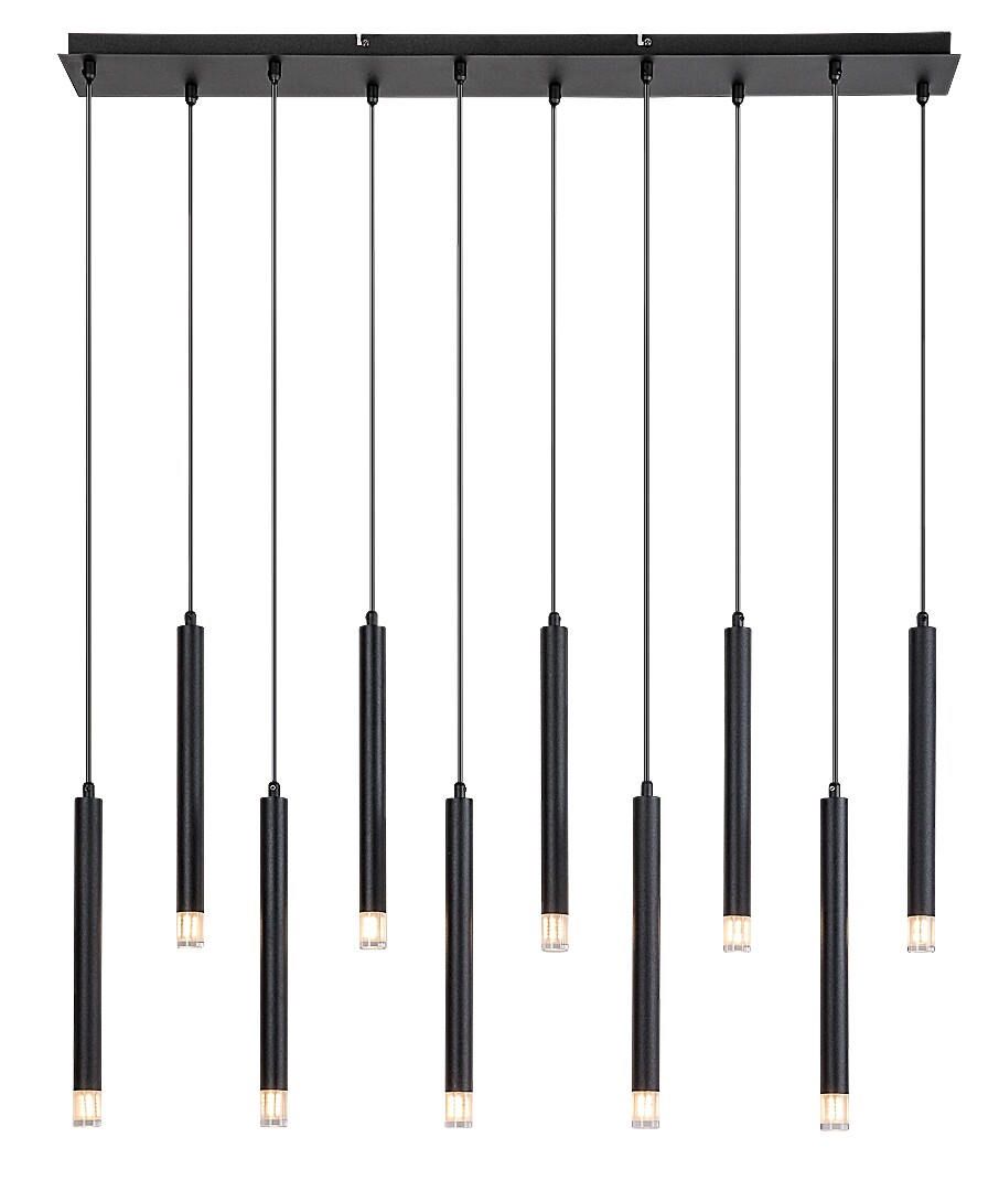 La lampada a sospensione Rabalux Ramira a 10 luci è consigliata principalmente a chi cerca una sospensione in stile minimalista, ma dalle dimensioni importanti e con un’elevata intensità luminosa. La lampada è realizzata in metallo nero elegante ed è completata da paralumi in acrilico trasparente e da una lunga base decorativa rettangolare dello stesso colore delle testate. Le testate luminose, di piccolo diametro, hanno una forma tubolare e cilindrica e sono disposte in fila, una accanto all’altra. Sono sospese a diverse altezze, conferendo al modello un aspetto unico. La lampada a sospensione è ideale non solo per il soggiorno, ma anche per la cucina, la sala da pranzo o la camera da letto. Può essere utilizzata con dieci lampadine, ciascuna con una potenza massima di 5 W. Il tipo di attacco è G9. La lampada è fornita senza sorgenti luminose.