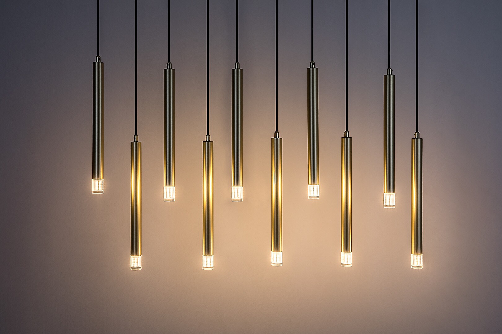 La lampada a sospensione Rabalux Ramira a 10 luci è consigliata principalmente a chi cerca una sospensione in stile minimalista, ma dalle dimensioni importanti e con un’elevata intensità luminosa. La lampada è realizzata in metallo color oro elegante ed è completata da paralumi in acrilico trasparente e da una lunga base decorativa rettangolare dello stesso colore delle testate. Le testate luminose, di piccolo diametro, hanno una forma tubolare e cilindrica e sono disposte in fila, una accanto all’altra. Sono sospese a diverse altezze, conferendo al modello un aspetto originale. La lampada a sospensione è ideale non solo per il soggiorno, ma anche per la cucina, la sala da pranzo o la camera da letto. Può essere utilizzata con dieci lampadine, ciascuna con una potenza massima di 5 W. Il tipo di attacco è G9. La lampada è fornita senza sorgenti luminose.