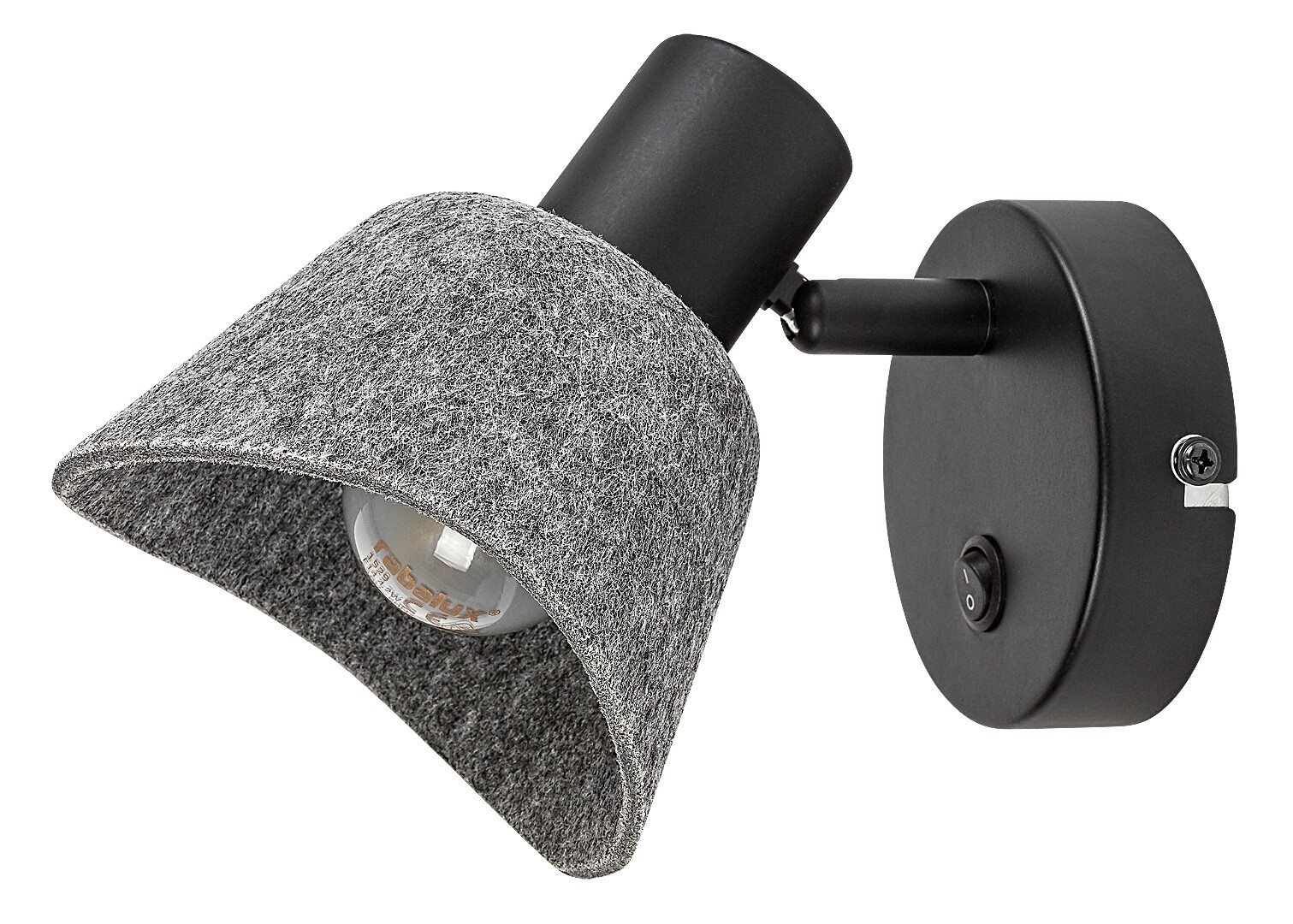 Il faretto da parete Rábalux Farelia è consigliato a chi ama le lampade dal design originale che contribuiscono a creare un’atmosfera accogliente. Questo modello è realizzato in metallo nero con un paralume in feltro grigio. Il materiale del paralume è in feltro ecologico, realizzato con materiali riciclati. La lampada può essere fissata alla parete tramite una piccola base decorativa rotonda e si aziona mediante un interruttore posto sulla base. La parte inferiore del paralume a forma di campana è curva, il che, insieme al materiale morbido in feltro, conferisce alla lampada un aspetto piacevole e accogliente. È la scelta ideale per il soggiorno, la camera da letto o lo studio. Può essere utilizzata con una sola lampadina di potenza massima pari a 10 W. Il tipo di attacco è E14. Il faretto è dotato di una testata flessibile e pratica, che consente di orientare la luce secondo le esigenze. La lampada viene fornita senza fonte luminosa.