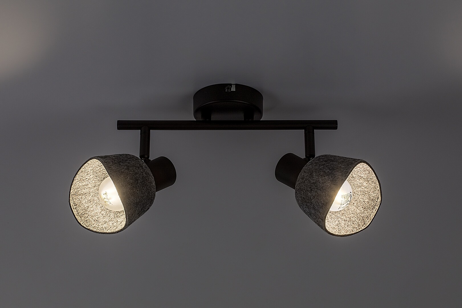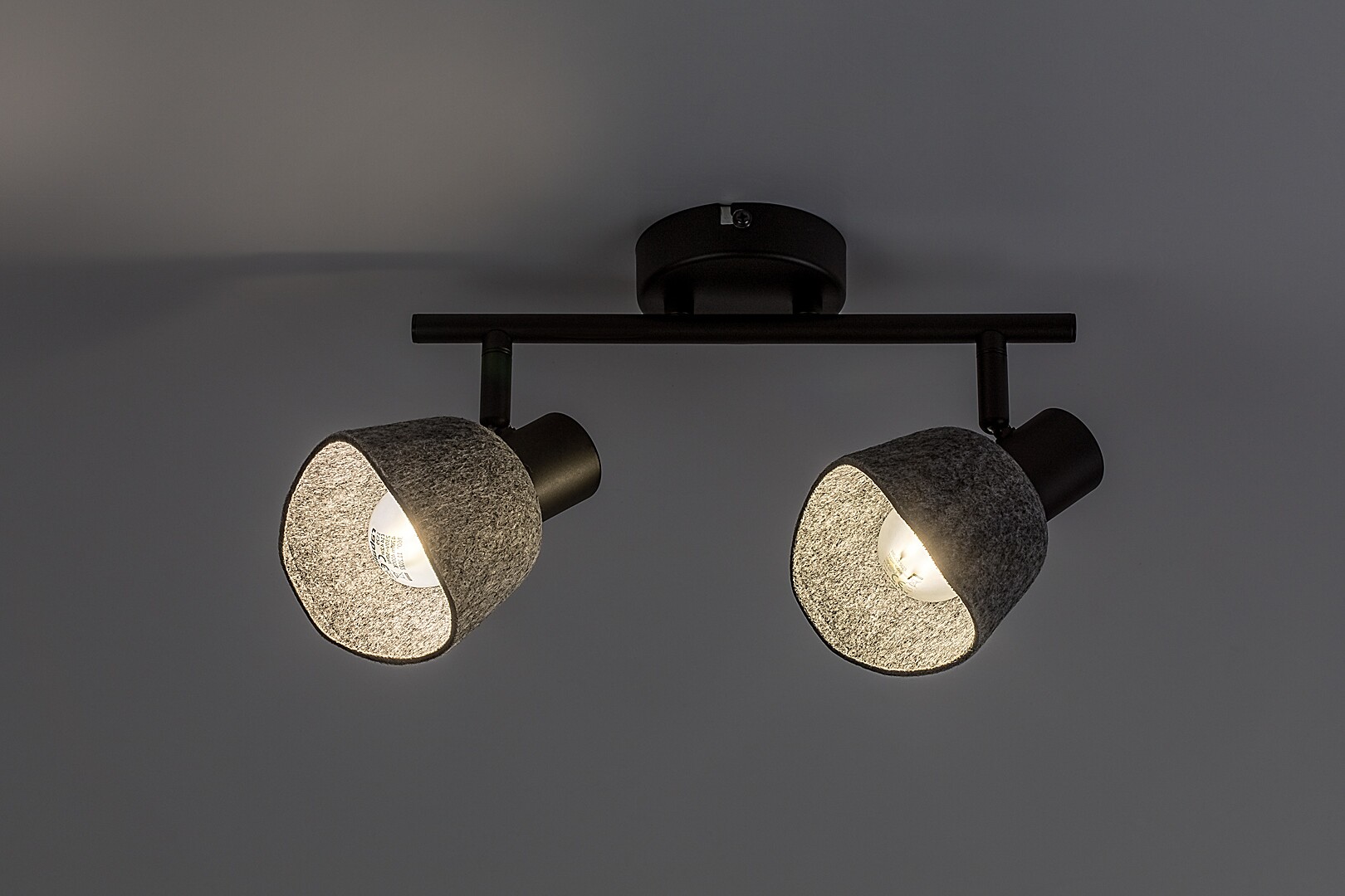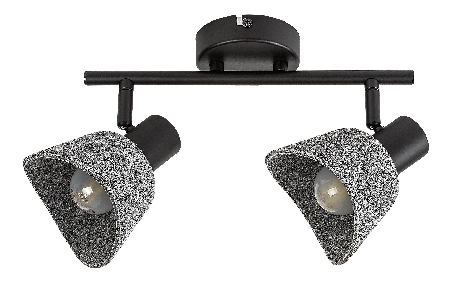 Il faretto da soffitto a 2 luci Rábalux Farelia è consigliato a chi ama le lampade dal design originale che contribuiscono a creare un’atmosfera accogliente. Questo modello è realizzato in metallo nero con paralumi in feltro grigio. Il materiale del paralume è in feltro ecologico, prodotto con materiali riciclati. La lampada può essere fissata al soffitto tramite una piccola base decorativa rotonda, alla quale è collegata una barra cilindrica che sostiene le testate delle lampade. La forma curva dei paralumi a campana, abbinata al morbido materiale in feltro, conferisce alla lampada un aspetto piacevole e accogliente. È la scelta ideale per il soggiorno, la camera da letto o lo studio. Può essere utilizzata con due fonti luminose, ciascuna con una potenza massima pari a 10 W. Il tipo di attacco è E14. Il faretto a 2 luci è dotato di testate flessibili e pratiche. La lampada viene fornita senza sorgenti luminose.