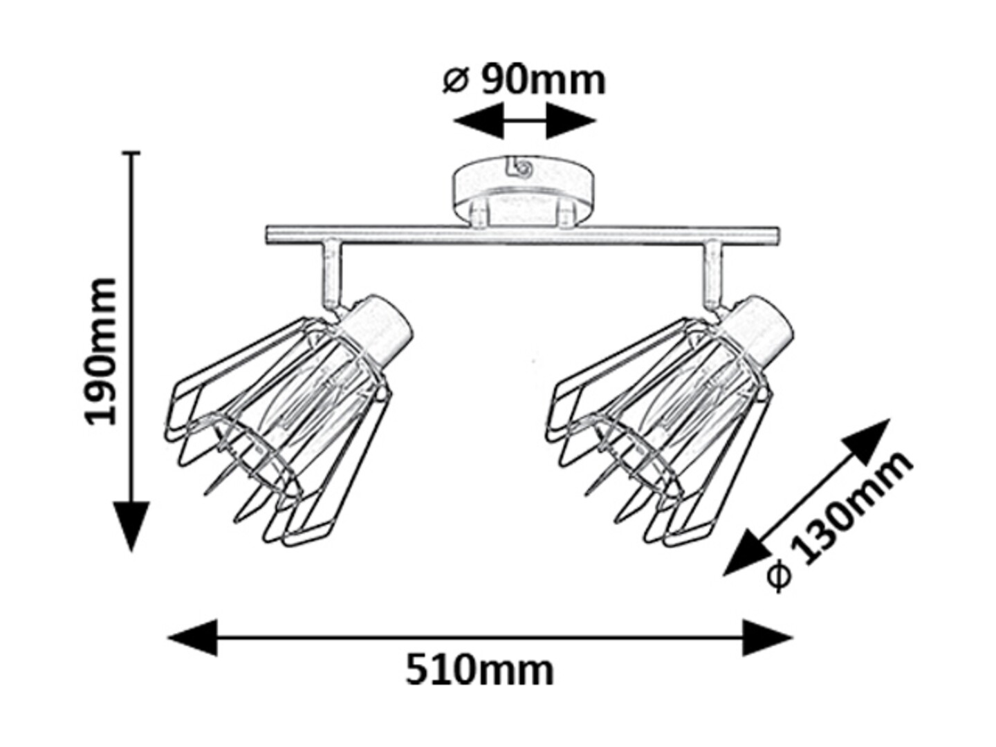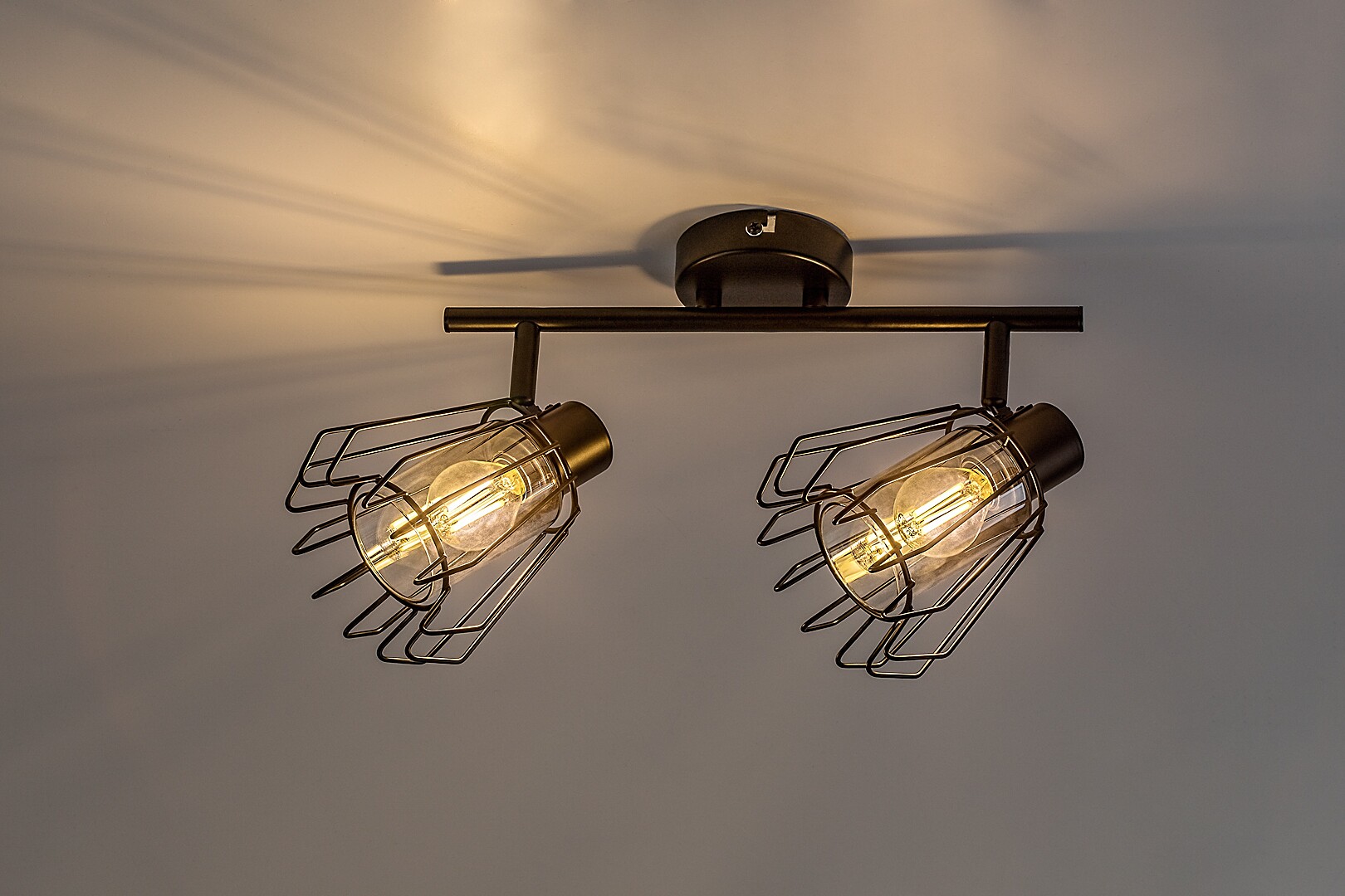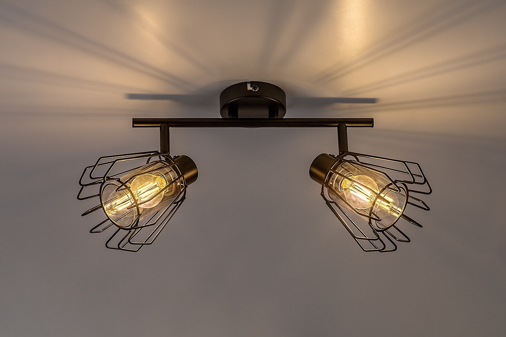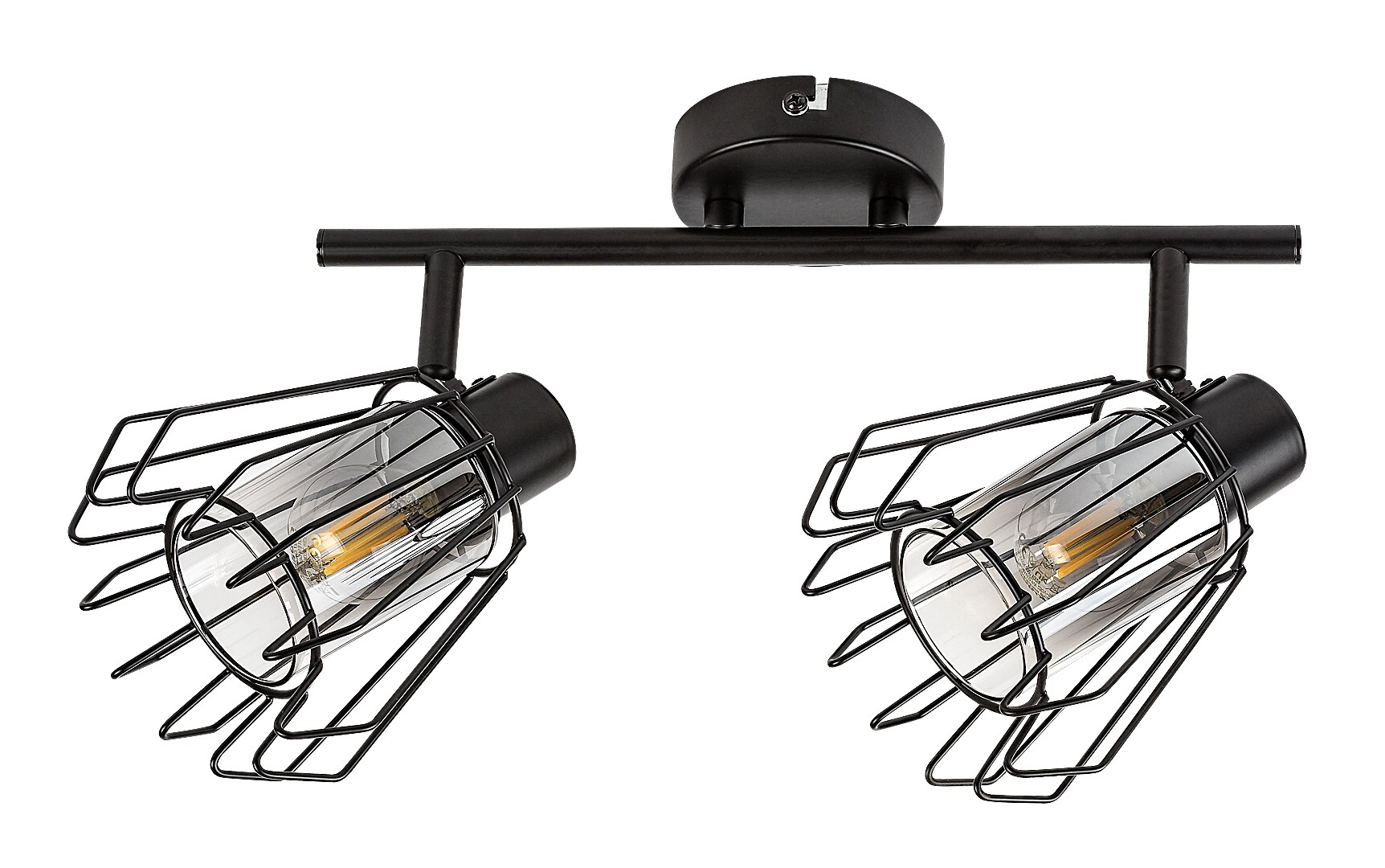 Il faretto da soffitto a 2 luci Rábalux Emerencia è consigliato a chi ama le lampade dallo stile industriale e dal design originale. Questo modello presenta paralumi a griglia ed è realizzato in metallo nero. All’interno delle testate si trovano paralumi cilindrici in vetro fumé, circondati da strutture esterne a griglia di forma A. Il faretto può essere fissato al soffitto tramite una piccola base decorativa rotonda, alla quale è collegata una barra cilindrica che sostiene entrambe le testate. La plafoniera è la scelta ideale per il soggiorno, la cucina, la sala da pranzo o la camera da letto. Può essere utilizzata con due sorgenti luminose, ciascuna con una potenza massima pari a 40 W. Il tipo di attacco è E14. Il faretto è dotato di testate orientabili pratiche, che permettono di dirigere la luce secondo le esigenze. Questo modello viene fornito senza sorgenti luminose.