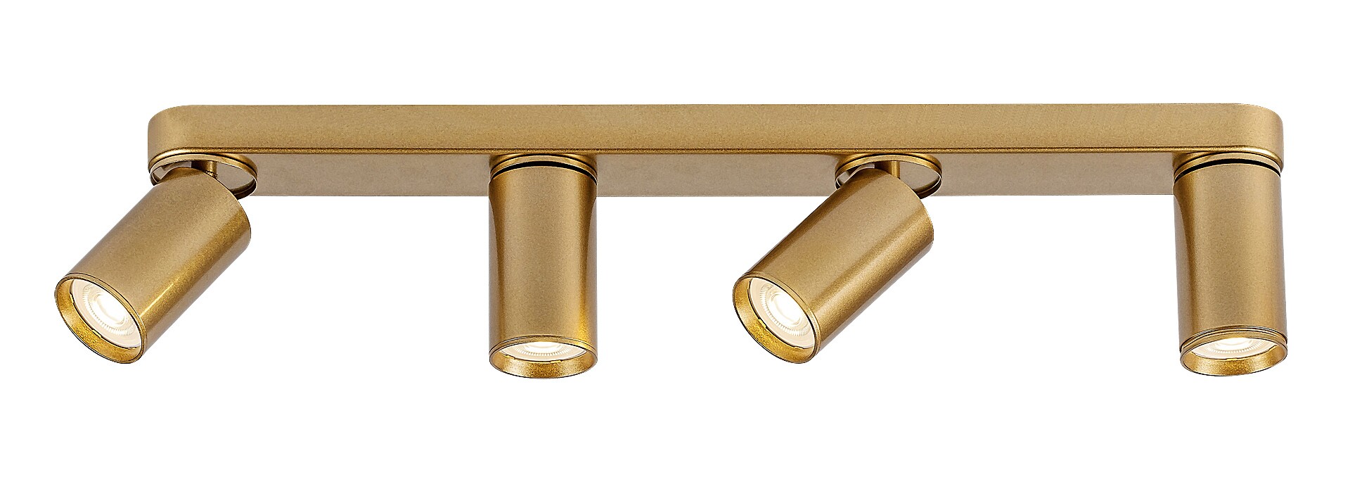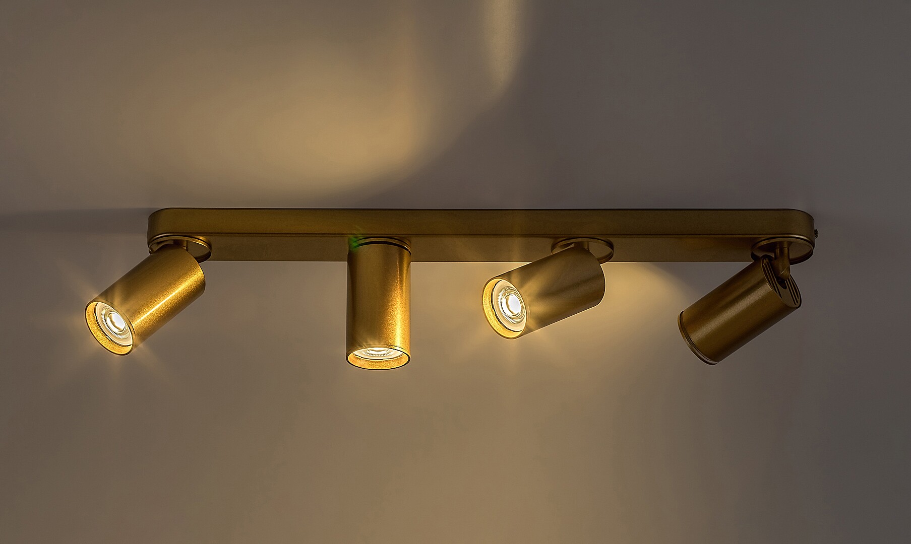 Il faretto da soffitto a 4 luci Rábalux Mirina è la scelta ideale per chi cerca un modello minimalista ma elegante, adatto anche agli ambienti più spaziosi della casa. Il faretto è realizzato in metallo di colore oro brillante, con testate cilindriche e paralumi in alluminio. Può essere fissato al soffitto tramite una base decorativa lunga con estremità arrotondate, sulla quale le testate delle lampade sono disposte in fila, una accanto all’altra. Le testate sono flessibili, così puoi orientare la luce secondo necessità per illuminare comodamente l’intero ambiente. Questo modello può essere utilizzato con quattro lampadine, ciascuna con una potenza massima pari a 5 W. Il tipo di attacco è GU10. È la scelta perfetta per il soggiorno, la camera da letto o lo studio. Puoi scegliere lampadine a luce bianca calda o naturale. La lampada da soffitto viene fornita senza sorgenti luminose.