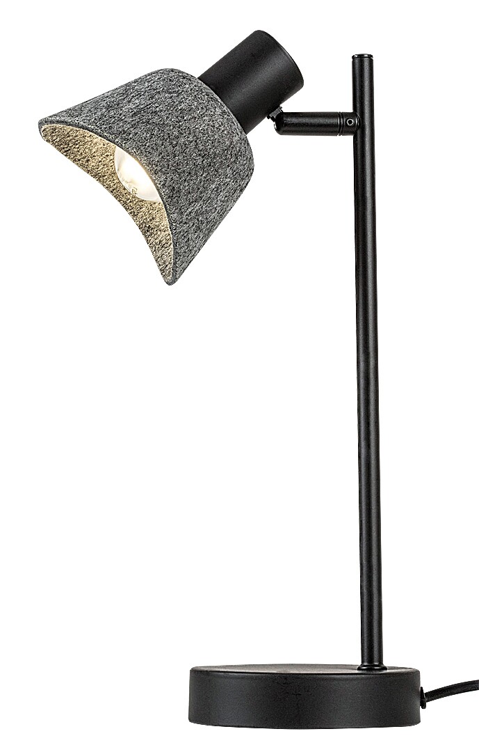 La lampada da tavolo Rábalux Farelia è la scelta ideale per chi cerca una lampada d’appoggio dal design originale che contribuisca a creare un’atmosfera accogliente. Questo modello è realizzato in metallo nero con un paralume in feltro grigio. Il materiale del paralume è in feltro ecologico, prodotto con materiali riciclati. La lampada è dotata di una base rotonda che garantisce stabilità e di una testata orientabile, così da poter dirigere la luce secondo le proprie esigenze. L’accensione avviene tramite un interruttore a filo. La parte inferiore del paralume a campana è curva, il che, unito al morbido materiale in feltro, conferisce alla lampada un aspetto piacevole e accogliente. Ne consigliamo l’uso soprattutto nel soggiorno, in camera da letto o nello studio. Può essere utilizzata con una sola lampadina di potenza massima pari a 10 W. Il tipo di attacco è E14. La lampada viene fornita senza sorgente luminosa.