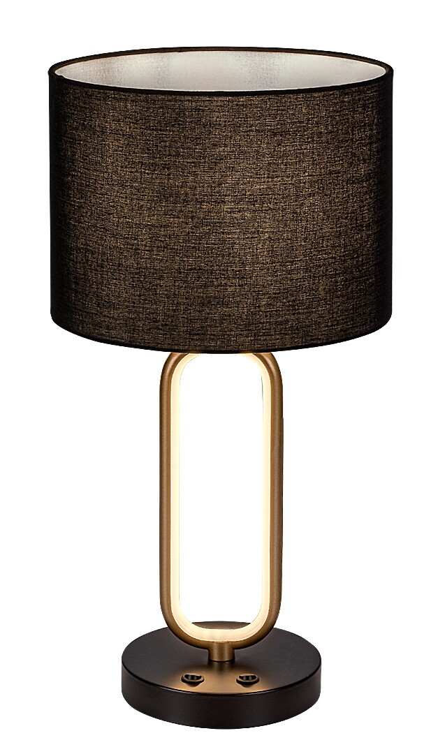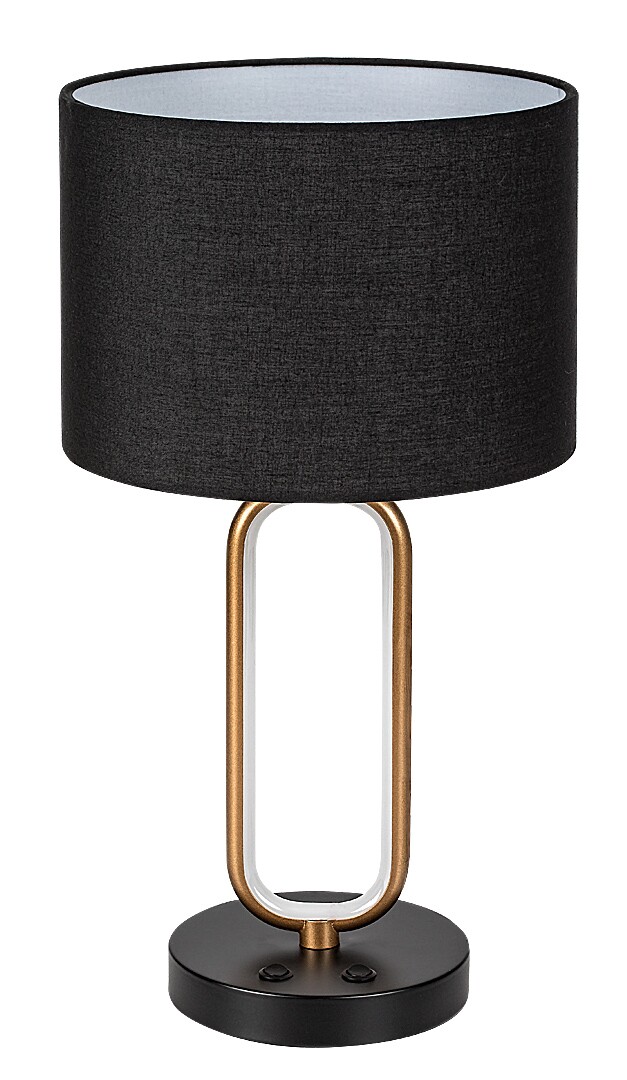 La lampada da tavolo Rábalux Domiro è la scelta ideale per chi desidera unire design moderno e creativo all’efficienza energetica. Questo modello unico è realizzato con una struttura in metallo di colore oro e un paralume cilindrico in tessuto nero, completato da una base decorativa rotonda nera. La lampada è dotata di interruttore e presenta una sorgente luminosa LED integrata, che – in una soluzione creativa – emette luce bianca calda all’interno della struttura che forma il braccio della lampada. A questa illuminazione si può aggiungere una lampadina con una potenza massima pari a 60 W da inserire nel portalampada coperto dal paralume. Il tipo di attacco è E27. Questo elegante modello da tavolo è caratterizzato da un funzionamento a basso consumo energetico e da una lunga durata grazie alla tecnologia LED. Ne consigliamo l’uso soprattutto nel soggiorno o in camera da letto. La lampada viene fornita senza sorgente luminosa.