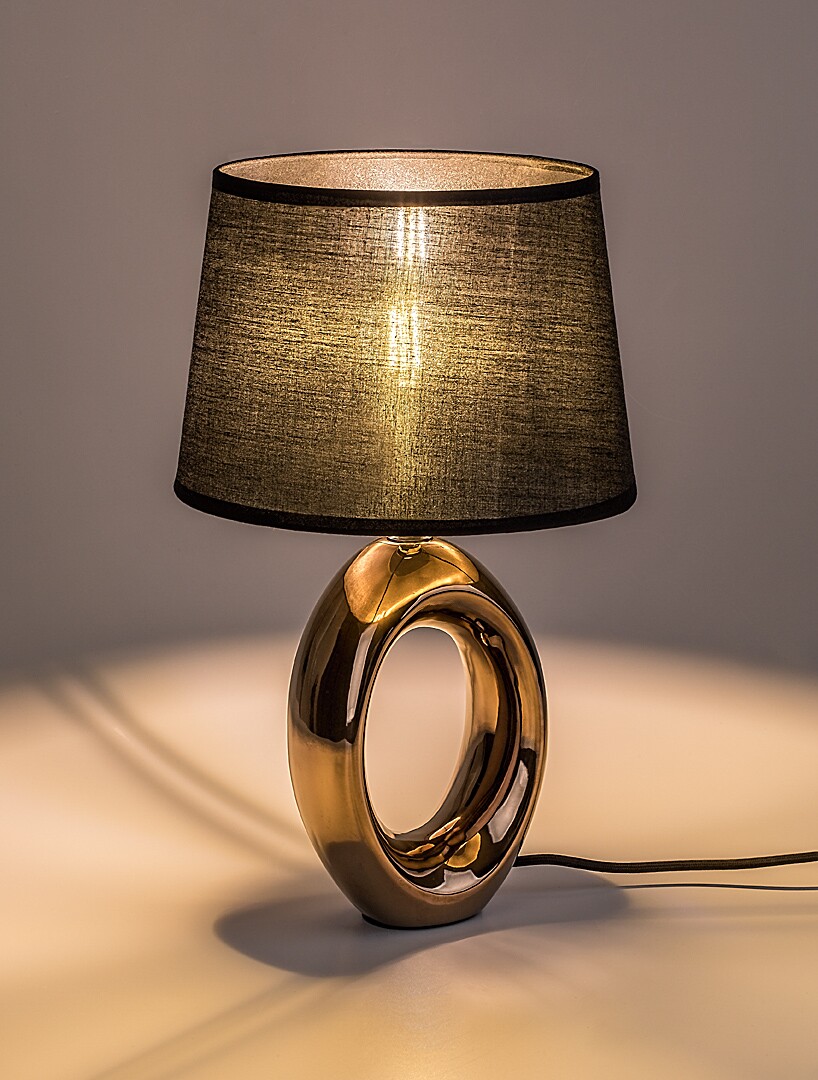 La lampada da tavolo Rabalux Dalora è consigliata a chi ama le lampade moderne dal design originale. Questo modello accattivante può essere posizionato nella camera da letto o nel soggiorno. Presenta una struttura ovale con foro centrale, realizzata in ceramica color bronzo. Il paralume è nero, di forma cilindrica leggermente svasata verso il basso, ed è realizzato in tessuto. La lampada può essere utilizzata con una lampadina di potenza massima pari a 25 W. Il tipo di attacco è E14. È possibile scegliere una sorgente luminosa a luce bianca calda o naturale. Grazie al paralume scuro, la lampada da tavolo offre un’illuminazione discreta, risultando perfetta se si desidera non disturbare il partner con una luce troppo intensa durante la notte. La lampada da notte è dotata di cavo in tessuto nero con interruttore a filo. Viene fornita senza sorgente luminosa.