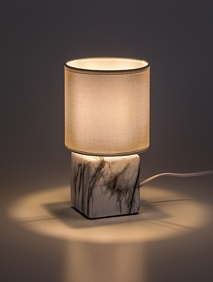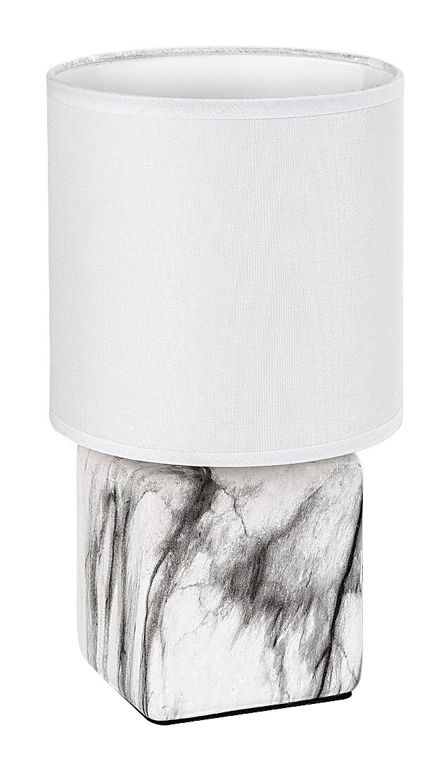La lampada da tavolo Rabalux Nalisa è consigliata a chi cerca una lampada complementare compatta e moderna. Questo modello unisce forme rotonde e angolari con materiali dall’aspetto naturale: è realizzato con una base in ceramica effetto marmo nei toni del grigio e del bianco, abbinata a un paralume cilindrico in tessuto bianco, aperto nella parte superiore e inferiore. Il paralume chiaro lascia passare molta luce, rendendo questa lampada adatta anche per la lettura o il lavoro. Può essere posizionata nella camera da letto o nel soggiorno, su un comodino o un tavolino, ma è perfetta anche sulla scrivania nello studio. Può essere utilizzata con una lampadina di potenza massima pari a 40 W. Il tipo di attacco è E14. La lampada da notte in ceramica è dotata di cavo bianco con interruttore a filo. Viene fornita senza sorgente luminosa.