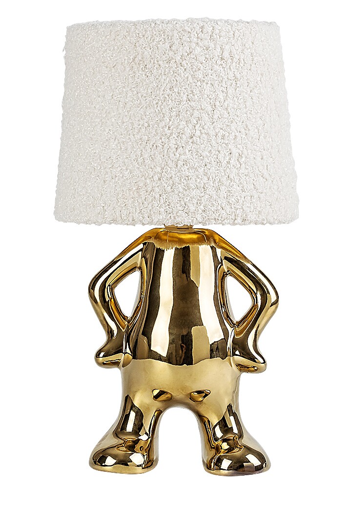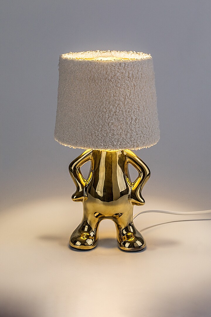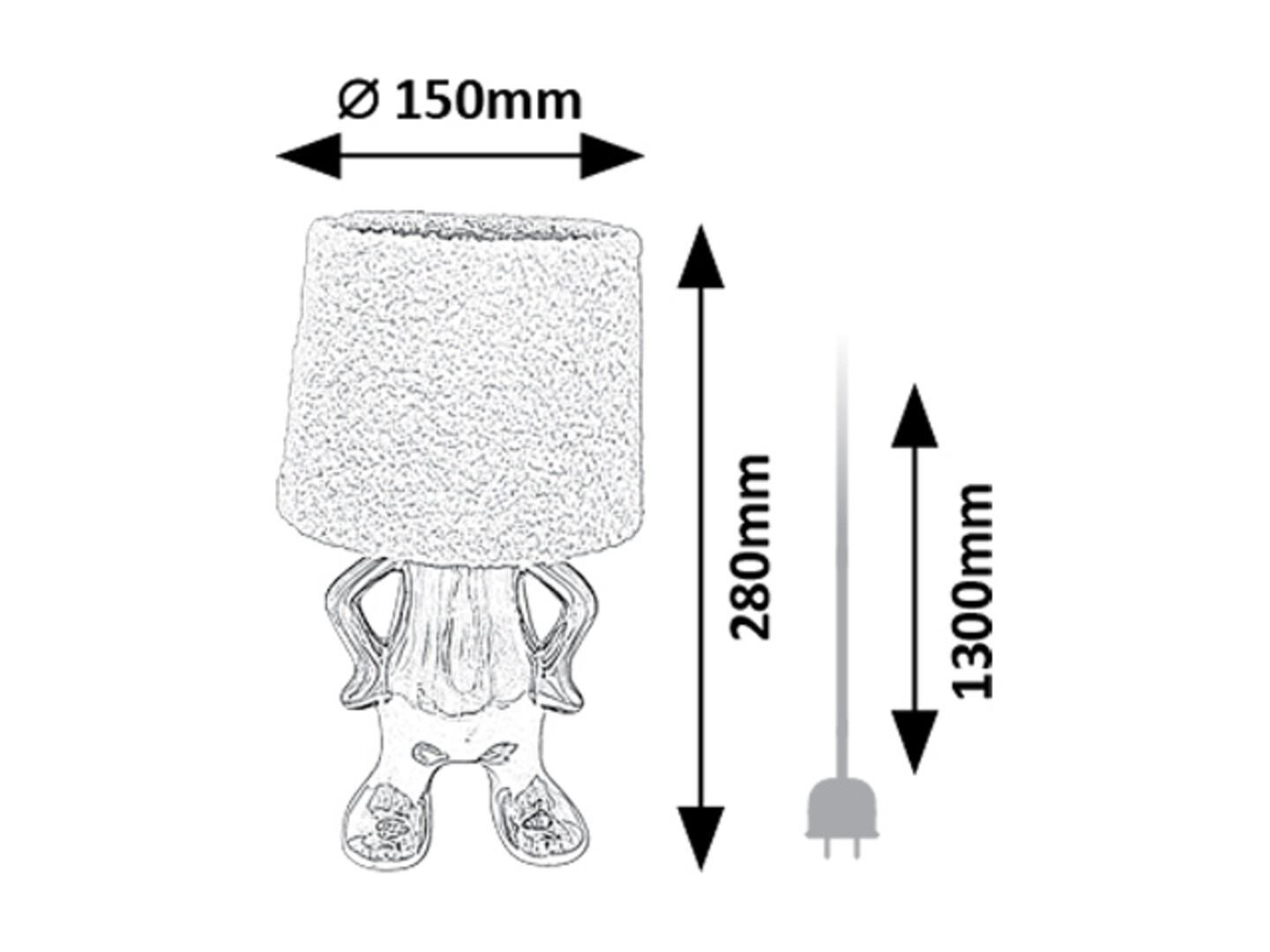 La lampada da tavolo Rábalux Smurfy è consigliata a chi ama le lampade creative dal design insolito, capaci di strappare un sorriso nella vita di tutti i giorni. Chi non ricorda i simpatici Puffi? Anche se questa lampada di design dall’aspetto allegro non è blu, il suo corpo ha la forma di un puffo. Al posto della classica base decorativa, poggia su piedini da puffo e al posto della testa ha un paralume in tessuto soffice color crema. La struttura è realizzata in ceramica dorata. Questo modello “puffoso” è perfetto per il soggiorno o la camera da letto. Si accende tramite un interruttore a filo e può essere utilizzato con una sola sorgente luminosa con una potenza massima pari a 40 W. Il tipo di attacco è E14. In base ai tuoi gusti, puoi scegliere una sorgente luminosa a luce bianca calda o naturale. La lampada di design viene fornita senza sorgente luminosa.