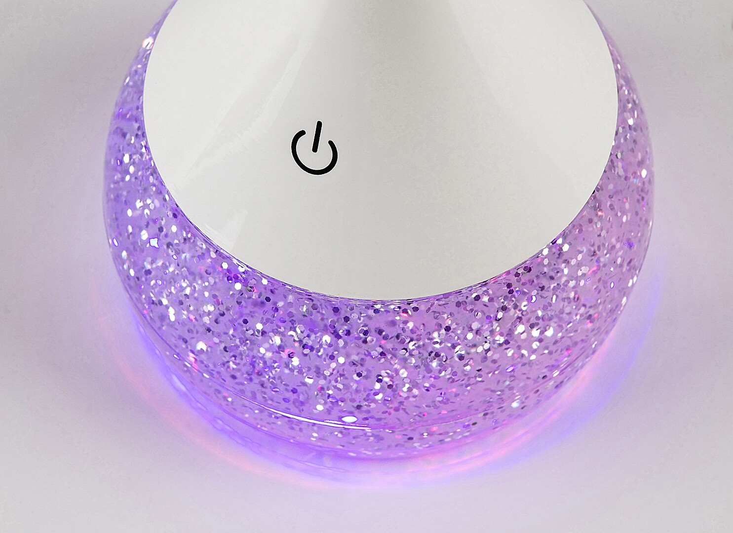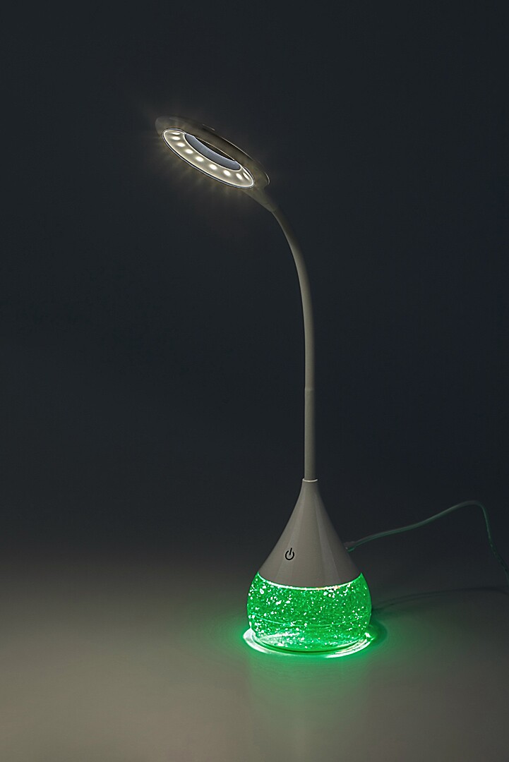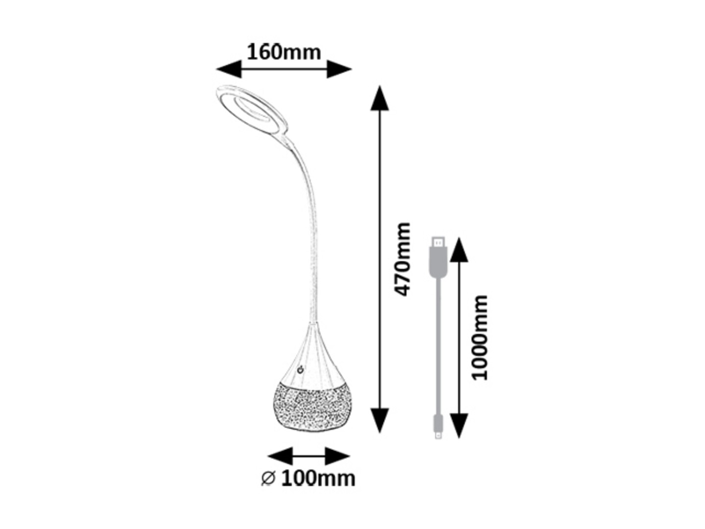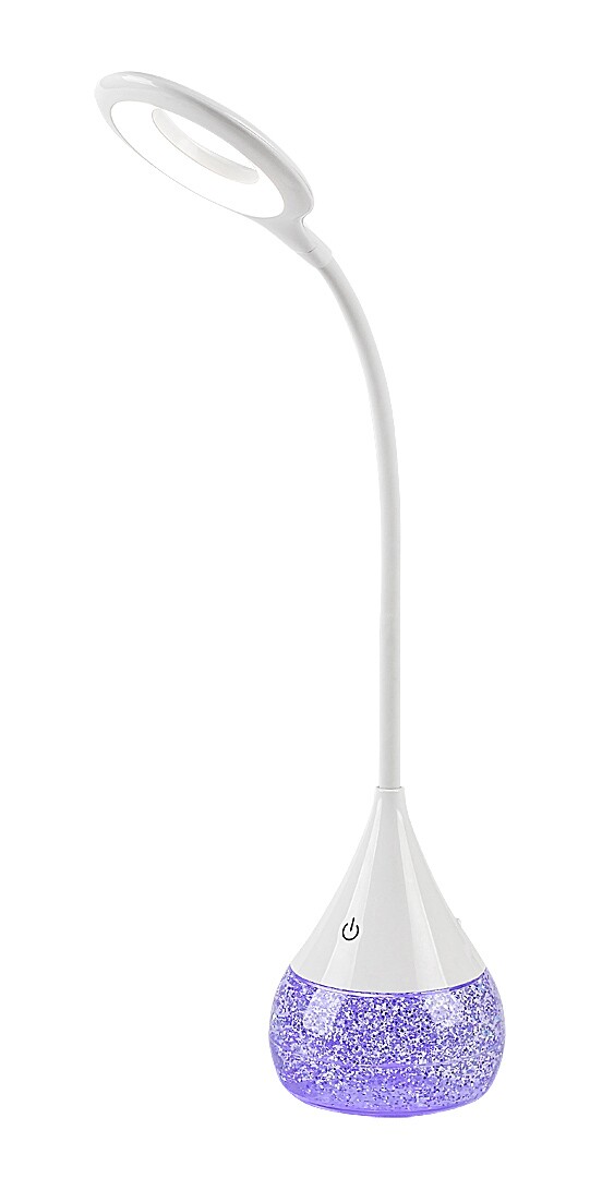 La lampada da tavolo Rábalux Vivter è consigliata a chi cerca una lampada d’accento con funzionalità avanzate. Questo modello smart è interamente realizzato in plastica di colore bianco. Il braccio è sottile, di forma cilindrica, e termina con una testata flessibile a forma di ciambella. La struttura si allarga verso il basso: la parte tondeggiante che funge da base contiene un materiale micaceo fluido, che può essere attivato separatamente. La lampada è in grado di emettere luce RGB, grazie alla quale il riempimento micaceo può brillare in una grande varietà di colori. La lampada di design è dotata di una sorgente luminosa LED integrata che emette luce bianca naturale. L’intensità luminosa può essere regolata tramite un interruttore touch situato nella parte inferiore della lampada. È la scelta ideale per il soggiorno, la camera da letto o lo studio