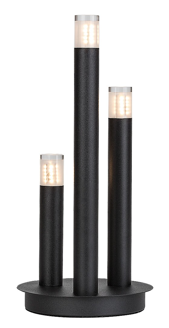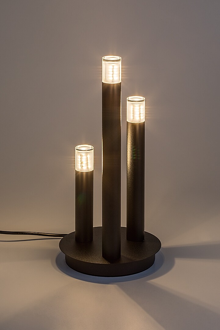 La lampada da tavolo Rábalux Ramira è la scelta ideale per chi predilige un design unico e modelli universali, facili da spostare. La lampada è realizzata in metallo di colore nero elegante, con paralumi in acrilico trasparente posizionati sopra le testate. La base decorativa è rotonda e sostiene tre elementi cilindrici di altezze diverse, che ricordano delle candele. Questa lampada di design può essere collocata in vari ambienti della casa moderna: è un’aggiunta elegante per il soggiorno, la cucina, la sala da pranzo o la camera da letto. Si accende tramite un interruttore a filo e può essere utilizzata con tre sorgenti luminose, ciascuna con una potenza massima pari a 5 W. Il tipo di attacco è G9. Puoi scegliere lampadine a luce bianca calda o naturale. La lampada viene fornita senza sorgenti luminose​.