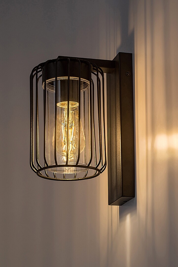 La lampada da parete per esterni Rabalux Tarpa è consigliata a chi ama lo stile industriale. La lampada è realizzata in metallo nero ed è completata da un paralume in plastica trasparente. Il suo design è caratterizzato principalmente dalla griglia esterna, che circonda il paralume interno cilindrico e attraverso la quale la luce si diffonde liberamente dall'interno della lampada. Questo modello da esterni è compatibile con una singola lampadina con una potenza massima di 40 W. Il tipo di attacco è E27. La temperatura colore della lampadina può essere scelta in base ai tuoi gusti. La lampada da parete è ideale per il terrazzo, ma può essere installata ovunque sulle pareti esterne della casa. Essendo protetta dall'intrusione di particelle solide con un diametro di 1 mm o superiore e dagli schizzi d'acqua provenienti da qualsiasi direzione, può essere installata in tutta sicurezza anche in un luogo meno riparato. Viene fornita senza la sorgente luminosa.