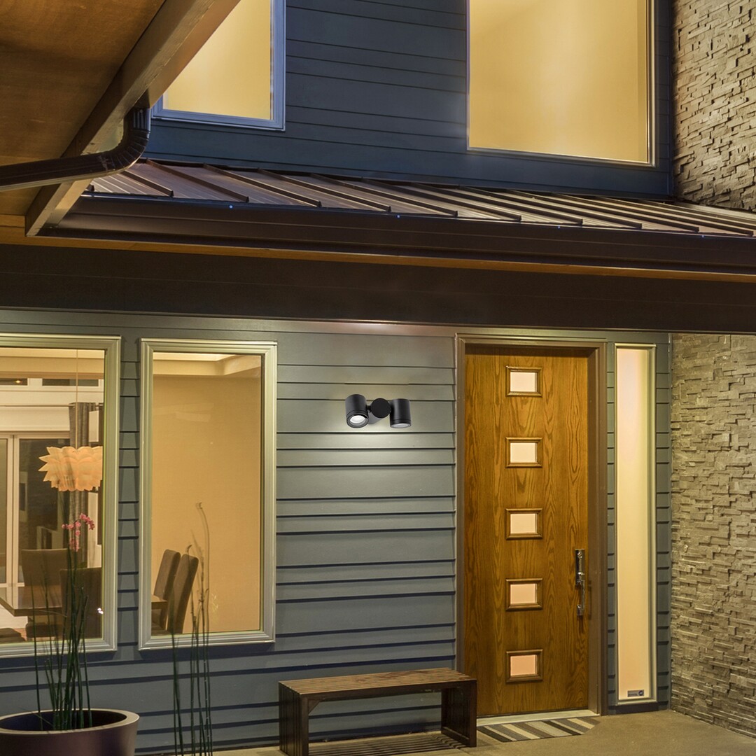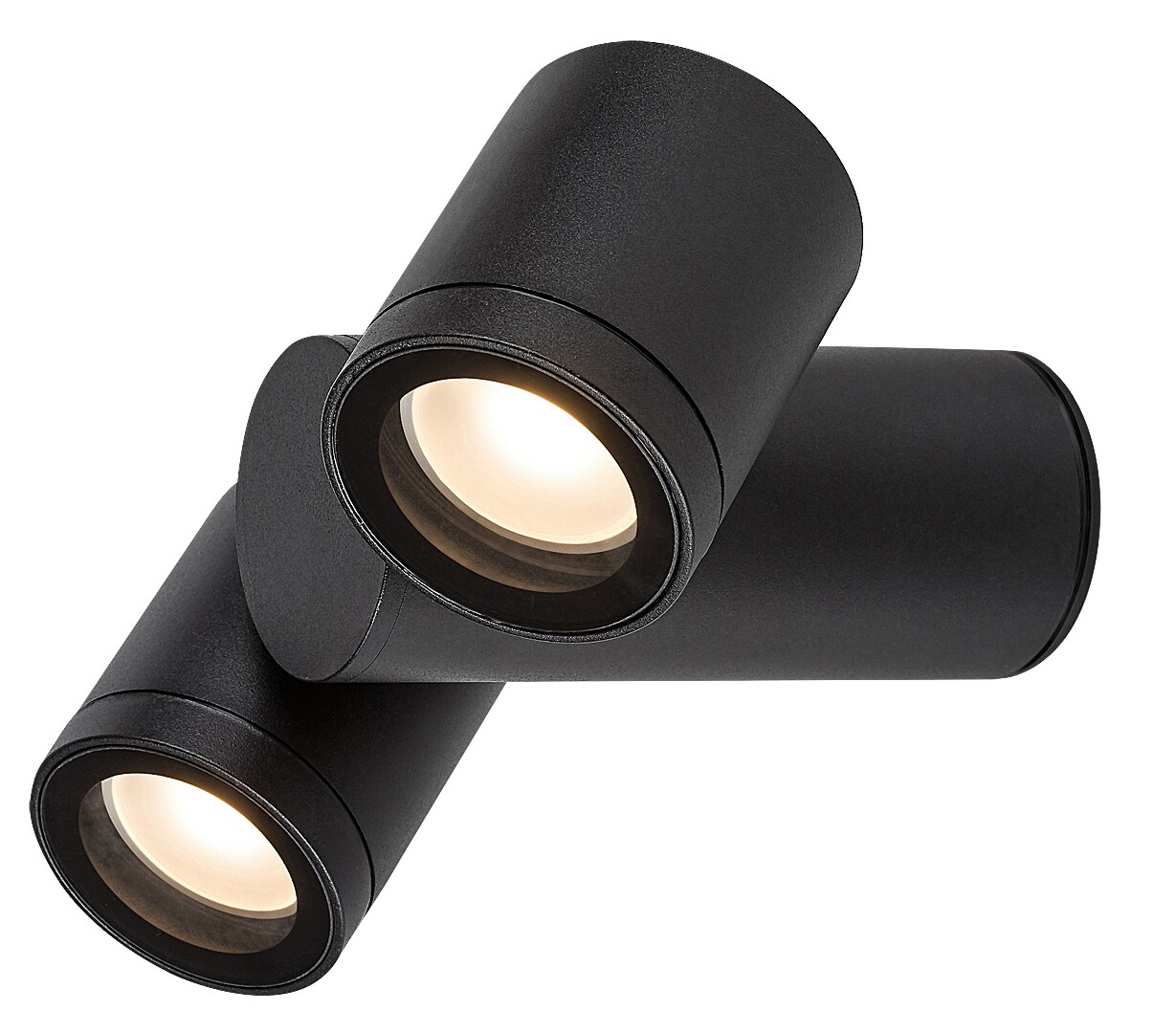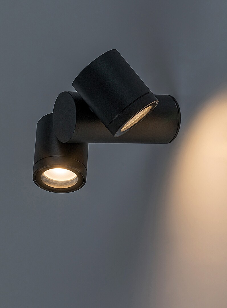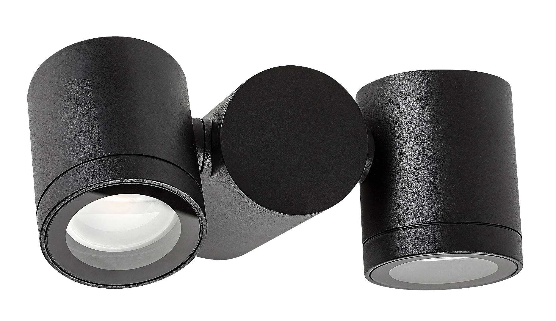 La lampada da parete per esterni Rabalux Enol a doppia luce è consigliata a chi cerca un'illuminazione dal design moderno realizzata con materiali di qualità. La lampada da parete è in alluminio nero e completata da paralumi in vetro trasparente. Le teste cilindriche della lampada, posizionate su entrambi i lati della base decorativa cilindrica, sono orientabili. La lampada da parete a 2 luci è una soluzione pratica per il terrazzo sopra la porta d'ingresso, ma può essere utilizzata ovunque sulla parete esterna della casa dove sia necessaria un'illuminazione aggiuntiva. Questo modello per esterni è protetto dall'intrusione di particelle solide con un diametro di 1 mm o superiore e dagli schizzi d'acqua provenienti da qualsiasi direzione, consentendo l'installazione in sicurezza anche in luoghi meno riparati dalla pioggia. La moderna lampada da parete per esterni può essere utilizzata con due lampadine, ciascuna con una potenza massima di 35 W. Il tipo di attacco è GU10. Viene fornita senza le sorgenti luminose.