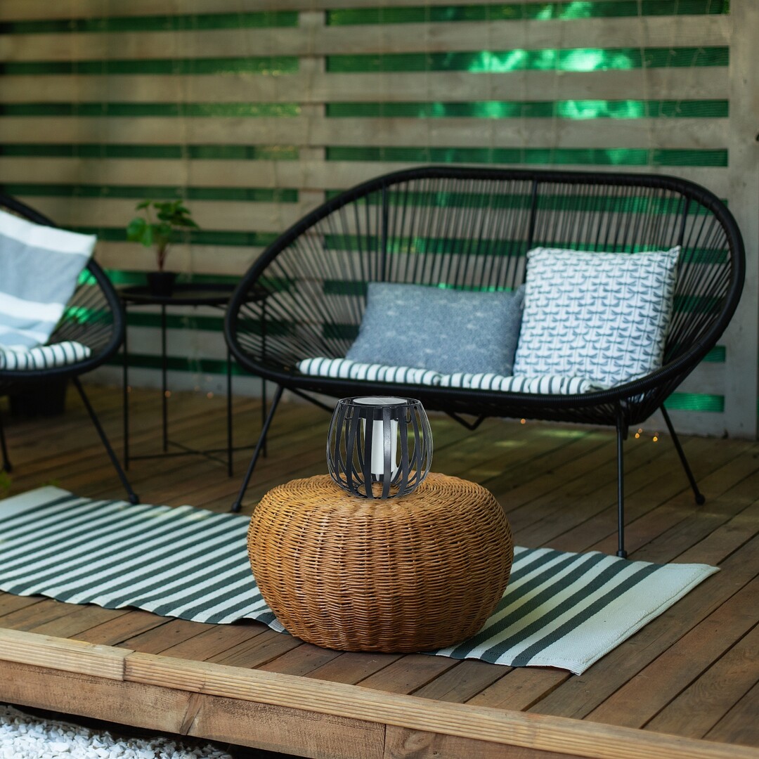 La lampada decorativa solare da esterno Rabalux Savoca è consigliata a chi apprezza un design unico e una collocazione flessibile. La struttura rotonda e a griglia della lampada è realizzata in metallo nero ed è completata da un paralume in plastica bianca. Il paralume cilindrico che ospita la sorgente luminosa è fissato nella parte superiore della sfera della struttura, all'interno. La lampada solare moderna può essere azionata tramite un interruttore ed è dotata di una sorgente luminosa LED integrata che emette luce bianca calda. Perfetta per un tavolo sul terrazzo o in giardino, dove può essere utilizzata per creare un'atmosfera accogliente e intima. È equipaggiata con una batteria integrata che si carica in 6-8 ore e funziona per lo stesso tempo con una singola carica. La lampada è protetta contro l'intrusione di particelle solide con un diametro di 1 mm o superiore e contro gli schizzi d'acqua provenienti da qualsiasi direzione.